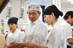 ・入社1年間、自社設立寿司学校にて寿司等の調理技術と、接客技術、経営に必要な数値管理、販促に必要なチラシ作製ほか、市場見学や繁盛店視察など盛りだくさんのカリキュラムを生美ながら実践も併用して体得していくプログラムになっています。 |